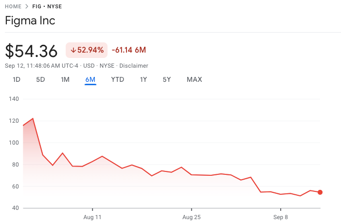 We all love Figma, and recently it went public. The stock had a stellar listing, up 250%, valuing it at $68bn. That’s way way more than the $20bn Adobe was offering.